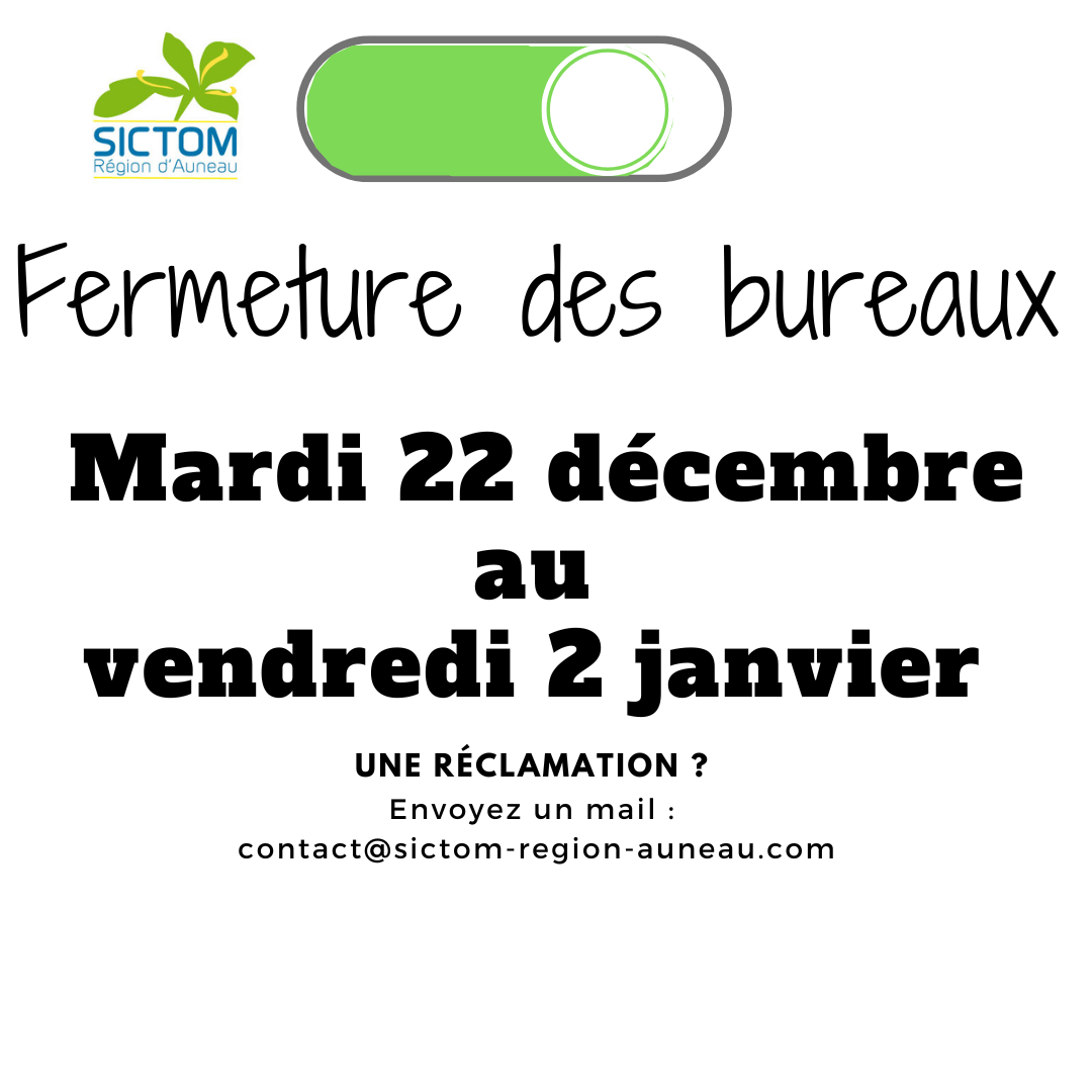 Les bureaux du SICTOM seront fermés à compter du mardi 22 décembre au 2 janvier inclus.